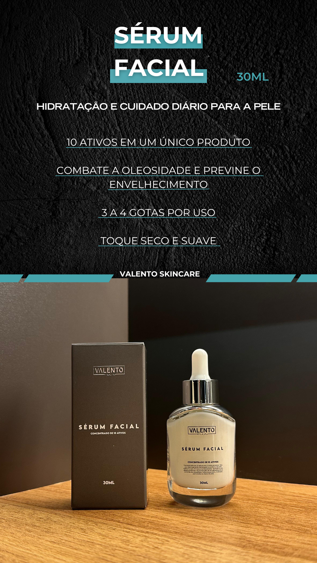 Eleve sua rotina de beleza com o Sérum Facial Valento, um concentrado de 10 ativos essenciais.